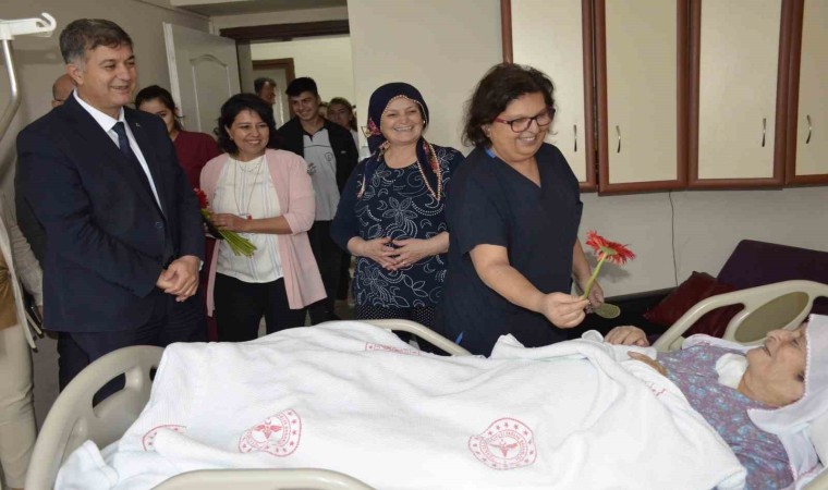Aydın Atatürk Devlet Hastanesi’nde 26 Ekim Hasta Hakları Günü dolayısıyla bir araya gelen hastane yöneticileri hastaları ziyaret ederek ’geçmiş olsun’ dileklerini iletti.