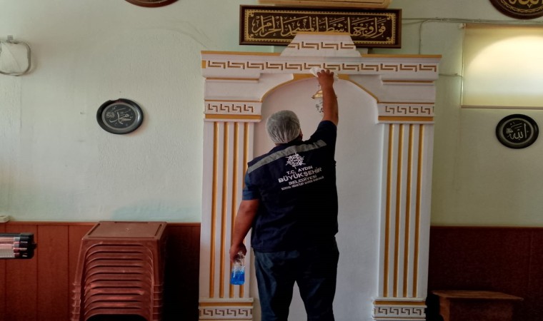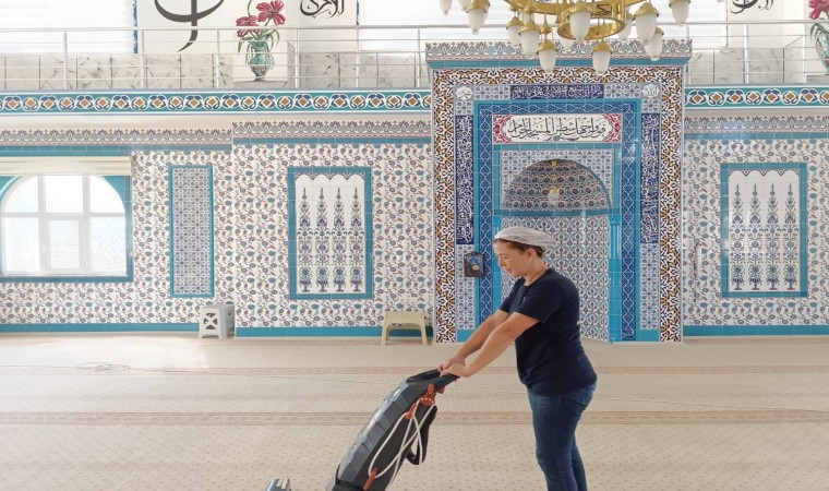 Temizlik çalışmaları kapsamında Sosyal Hizmetler Dairesi Başkanlığı’na bağlı ekipler, camilerin avluları, abdest alma bölümleri ve tuvaletleri yıkanırken, iç bölümlerinde ise halılar özel makine yardımı ile süpürülüp, mihrap, minber, vaaz kürsüsü ve pencereler tek tek siliniyor.
