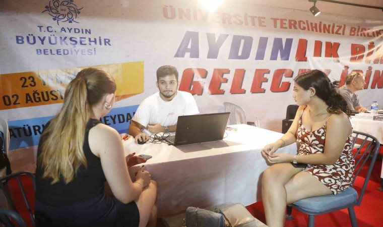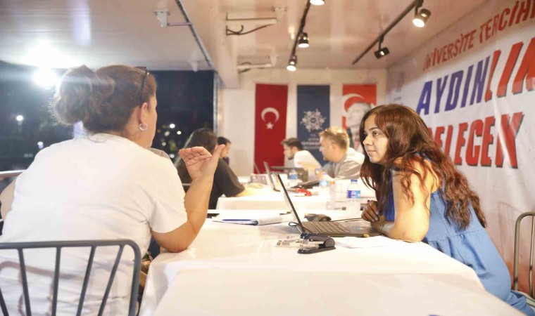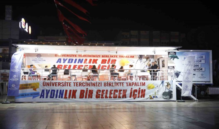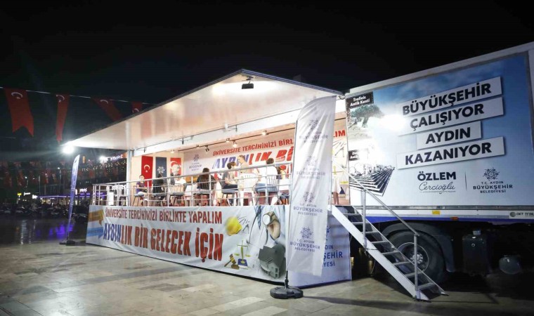 Yükseköğretim Kurumları Sınavı (YKS) sonuçlarının açıklanmasının ardından üniversite tercihleri için öğrenciler, her yıl olduğu gibi bu yılda Aydın Büyükşehir Belediyesi’nin Atatürk Kent Meydanı’nda bulunan tercih tırına yoğun ilgi gösteriyor.