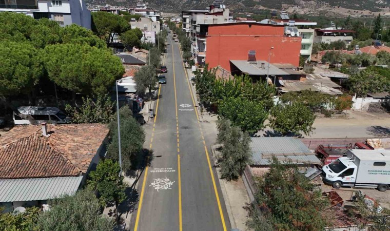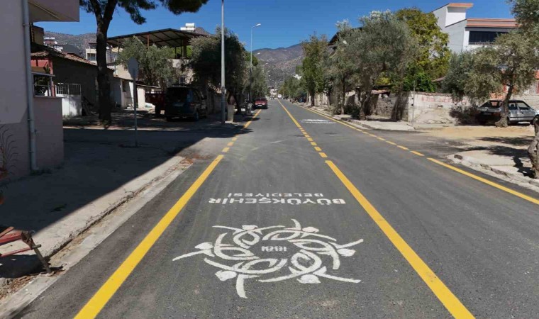 Aydın Büyükşehir Belediyesi Fen İşleri Dairesi Yol Yapım ve Bakım Şubesi ekipleri, Buharkent ilçesi Şehitler Caddesi’nde sıcak asfalt seriminin ardından yol çizgi ve logo çalışmalarını tamamladı.