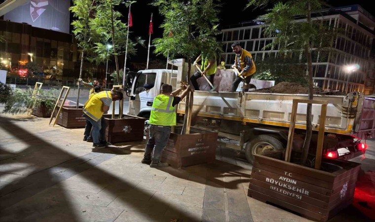 Aydın Büyükşehir Belediye Başkanı Özlem Çerçioğlu tarafından kente kazandırılan Efeler ilçesi Atatürk Kent Meydanı’nda temizlik, peyzaj ve çevre düzenleme çalışmaları gerçekleştirdi. Atatürk Kent Meydanı’nda bulunan havuzu temizleyen ekipler, meydan genelinde de detaylı temizlik çalışması gerçekleştirdi. Büyükşehir Belediyesi fidanlığında yetiştirilen mevsimlik çiçekler ile süslenen Atatürk Kent Meydanı’nda gece saatlerinde peyzaj ve çevre düzenleme çalışmaları da hayata geçirildi. Ağaçların mevsimsel bakımı ile peyzaj düzenlemelerinden sonra Atatürk Kent Meydanı’nın görünümü vatandaşlardan tam not aldı.