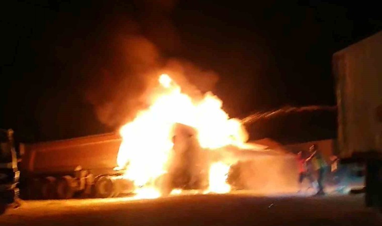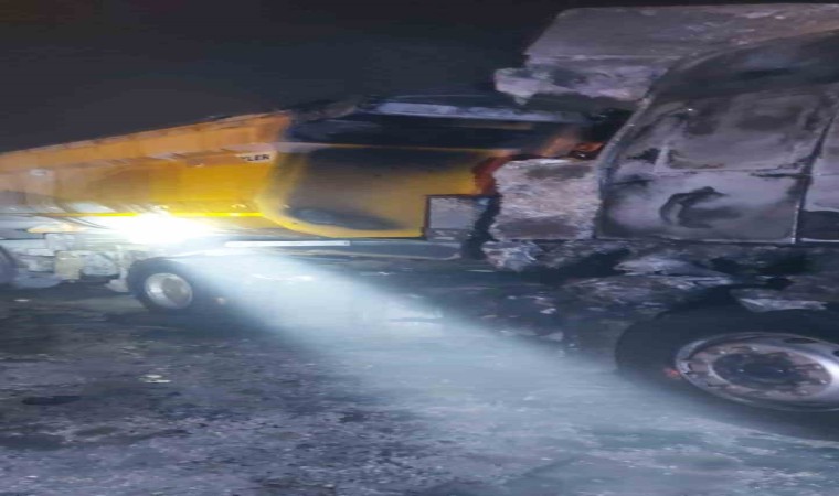 Aydın-Denizli Otoyol inşaatı Dalama Şantiyesi’nde bir kamyon ve bir tır tamamen yanarak hurda yığınına döndü.