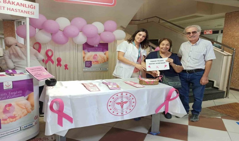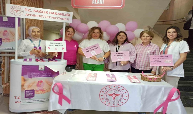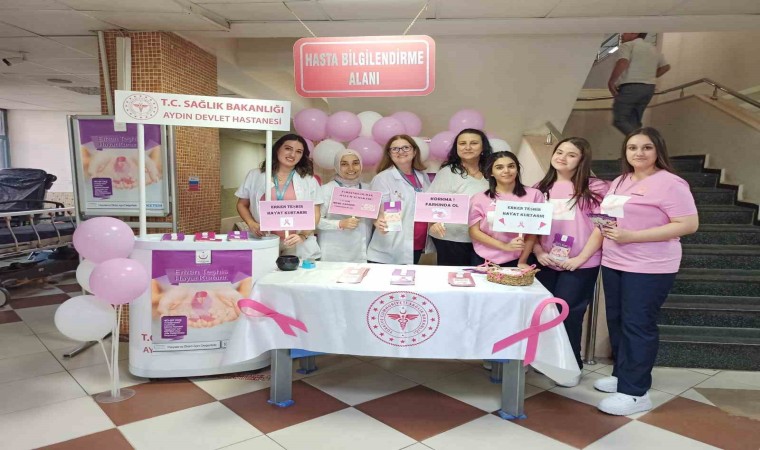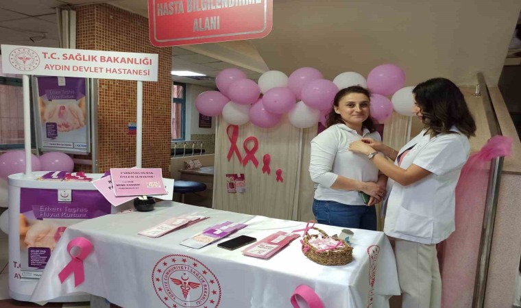 Aydın Devlet Hastanesi ’1-31 Ekim Meme Kanseri Farkındalık Ayı’ dolayısıyla poliklinik girişine kurulan stantla meme kanserine karşı dikkat çekilerek bilgilendirmelerde bulunuldu.