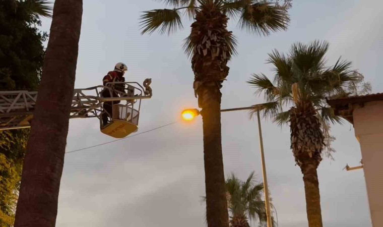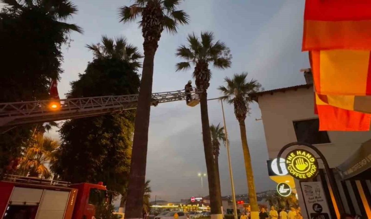 Kuşadası, Atatürk Bulvarı üzerinde bulunan bir palmiye ağacına takılan güvercin, vatandaşların dikkatini çekti. Güvercini gören vatandaşlar, durumu hemen Aydın Büyükşehir Belediyesi itfaiye ekiplerine bildirdi. Olay yerine hızla gelen itfaiye ekipleri, merdiven açarak kuşu sıkıştığı yerden kurtardı. Kurtarma operasyonu turistler ve vatandaşlar tarafından büyük bir ilgiyle izlendi. Başarılı geçen operasyonun ardından turistler, itfaiye ekiplerine alkışlarla destek verdi.