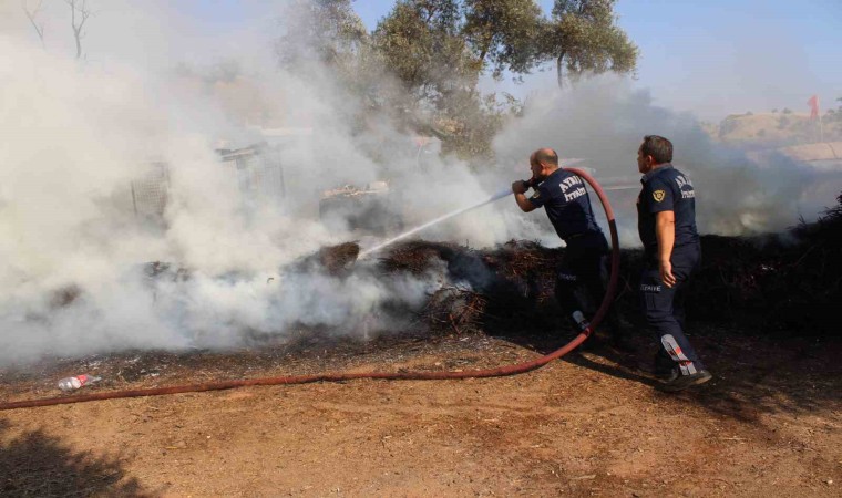 Aydın’ın Efeler ilçesinde bir evin bahçesinde istiflenmiş haldeki çalıların tutuşması sonucu meydana gelen yangında, itfaiyenin hızlı müdahalesiyle alevler evlere sıçramadan söndürüldü.