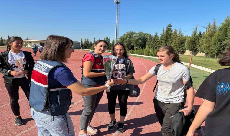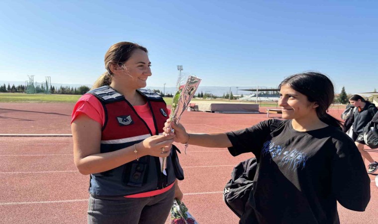 Aydın’da jandarma ekipleri ’Dünya Kız Çocukları Günü’ dolayısıyla Kardeşköy Mahallesi’nde bulunan atletizm sahasında düzenlenen yarışmaya katılan kız çocuklarını ziyaret ederek günlerini kutladı.