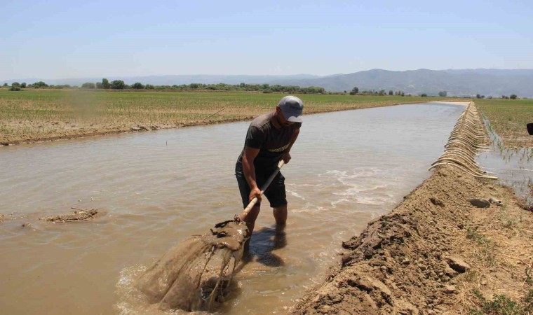 Tarlada çalışan işçilerden Okan Erdem ise çalışan işçi bulma sıkıntısından dolayı sulamaya girdikleri tarlayı bitirinceye kadar çalışmaya devam ettiklerini belirterek, “Gündelik 500 TL alıyoruz. Sulama işi bir günde bitmeyince gece de sulama yapıyoruz. İşimiz zor ama aşırı sıcak olunca suya girip serinlemeye çalışıyoruz. Suya girip çıktığımızda 15 dakika rahat çalışıyoruz. İşimiz bu yapacak bir şey yok” diye konuştu.