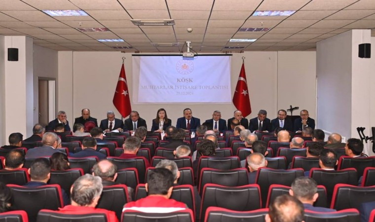 Toplantıya Vali Yakup Canbolat, İlçe Kaymakamı Tuğba Polat, Köşk Belediye Başkanı Nuri Güler ile kurum müdürleri ve muhtarlar katıldı. Gerçekleşen muhtarlar toplantısında mahalle muhtarlarının ilgili kurumlardan talep ve istekleri alındı.