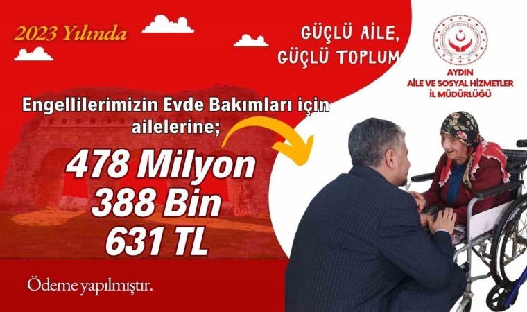Konu ile ilgili Aydın Aile ve Sosyal Hizmetler İl Müdürlüğü’nden yapılan açıklamada “Güçlü aile, güçlü toplum. Bakanlığımızın hizmet modellerinden olan Engelli Evde Bakım Hizmeti kapsamında 2023 yılında Aydın il genelinde 438 milyon 388 bin 631 TL yardım gerçekleştirilmiş olup engelli bireylerimizin her zaman yanlarındayız. Biz büyük bir aileyiz” ifadeleri yer aldı.