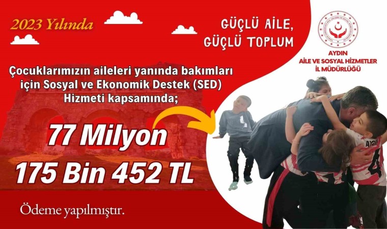 Aile ve Sosyal Hizmetler Bakanlığı koordinesinde gerçekleştirilen sosyal ve ekonomik destekler ülke genelinde olduğu gibi Aydın’da da birçok ihtiyaç sahibi vatandaşa umut oluyor. Bu çerçevede il genelinde Aydın Aile ve Sosyal Hizmetler İl Müdürlüğü tarafından yürütülen çalışmalarla her geçen gün daha çok ihtiyaç sahibi vatandaşa ulaşılıyor. Ailelerin ihtiyaç ve taleplerine uygun sosyal hizmet modelleri sunulmaya devam ederken Aydın’da 2023 yılında Aile ve Sosyal Hizmetler İl Müdürlüğü koordinesinde çocukların aileleri yanında bakımları için Sosyal ve Ekonomik Destek (SED) Hizmeti kapsamında 77 milyon 175 bin 452 TL, Doğum Yardımı kapsamında ise tüm annelere toplam 2 milyon 528 bin 386 TL ödeme yapıldı.