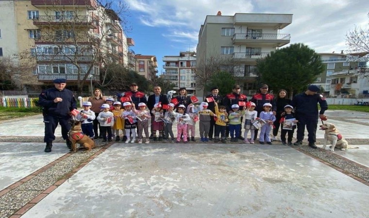 Aydın İl Jandarma Komutanlığı Aile İçi Şiddetle Mücadele Çocuk Kısım Amirliği koordinesinde Köpek Timi, Efeler İlçe Jandarma Komutanlığına bağlı Motosikletli Asayiş Timleri günü Adnan Menderes Kreş ve Gündüz Bakımevinde eğitim gören (173) çocuğa eğitim verildi. Jandarma Meslek Tanıtımı kapsamında ara tatil öncesi bilgilendirme faaliyeti icra edilirken, Jandarma hakkında tanıtıcı bilgiler verilerek çocuklarla birlikte eğlenceli vakit geçirildi. Faaliyet sonunda Jandarma Çocuk Dergisi, Boyama kitabı, Bayrak ve Şapka hediye edildi.
