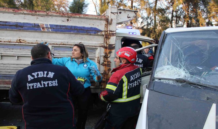 Aydın’ın Efeler ilçesinde 2 kamyonetin çarpışması sonucu meydana gelen kazada, 1’i çocuk 4 kişi yaralandı. Araçta sıkışan yaralı kadın ise ekiplerin uzun uğraşları sonucunda kurtarılarak hastaneye kaldırıldı.