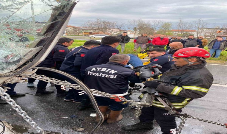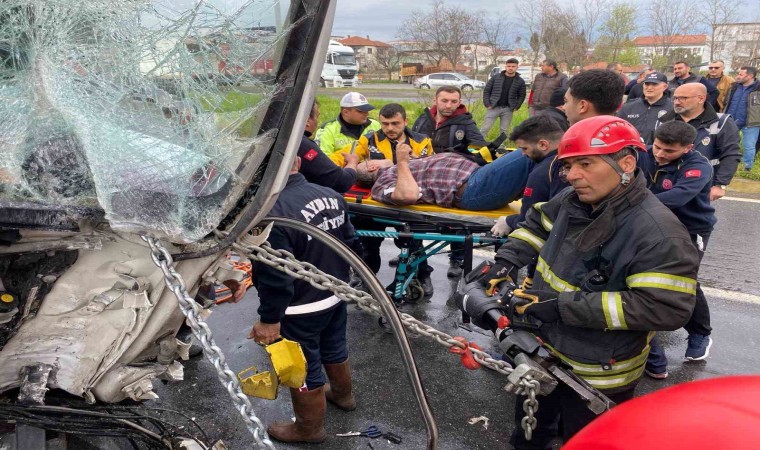 Kaza, Aydın-Denizli Karayolu üzerinde meydana geldi. Edinilen bilgiye göre, Denizli istikametine seyir halinde olan 15 LF 484 plakalı tır, aynı istikamette ilerleyen 07 ABP 566 plakalı tıra arkadan çarptı. Kazada 15 LF 484 plakalı tır sürücüsü K.Ü. araç içerisinde sıkışarak yaralandı. Kazayı görenler durumu 112 Acil Çağrı Merkezi’ne bildirdi. İhbar üzerine bölgeye sağlık, itfaiye ve polis ekipleri sevk edildi. Kısa sürede olay yerine gelen Aydın Büyükşehir Belediyesi İtfaiye Daire Başkanlığı ekipleri tır sürücüsünü sıkıştığı yerden çıkartarak sağlık ekiplerine teslim etti. Sağlık ekipleri tarafından da ilk müdahalesi yapılan yaralı tır sürücüsü ambulansla hastaneye kaldırılarak tedavi altına alındı.