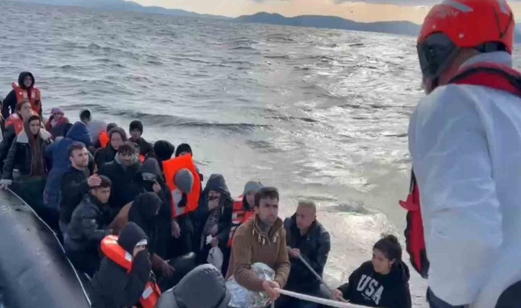 Aydın’ın Kuşadası ilçesi açıklarında Yunanistan unsurları tarafından Türk karasularına geri itilen lastik bot içerisindeki 14’ü çocuk 23 düzensiz göçmen kurtarıldı.