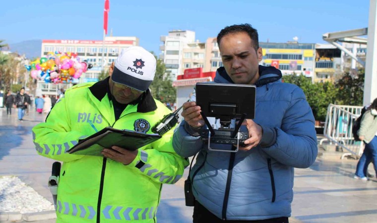 Aydın’da Trafik Denetleme Şube Müdürlüğü ve İnsansız Hava Araçları Büro Amirliği’ne bağlı İHA operatörleri tarafından drone destekli trafik denetimi gerçekleştirildi. Bu çerçevede il genelindeki çift sıra parklanma ve usulsüz parklara geçit vermeyen ekipler, merkez ilçe Efeler, Adnan Menderes Bulvarı üzerinde havadan drone denetimi yaptı. Seyir halinde cep telefonu kullanımı, hatalı şerit değiştirme, emniyet kemeri takmama, kasksız motosiklet kullanımı ve kırmızı ışıkta geçme konularının yanı sıra kentin işlek noktalarında ikinci sıra park yapan sürücüleri de kontrol eden ekipler, trafik kurallarına uymayan, usulsüz ve ikinci sıra park yapan sürücülerin yaptığı ihlalleri havadan görüntüleyerek fotoğrafladı. Yaklaşık 1 saat süren denetimde, otobüs duraklarına, yaya geçitlerine, usulsüz engelli park yerlerine ve ikinci sıraya park eden araçlar tek tek tespit edildi. Drone marifetiyle usulsüz park ettiği tespit edilen 34 sürücüye toplamda 15 bin TL cezai işlem uygulandı.