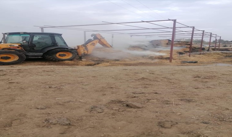 Aydın’ın Buharkent ilçesinde bir hayvan çiftliğinde çıkan yangında, saman balyaları küle dönerken, yangında hayvanların zarar görmemesi teselli kaynağı oldu.