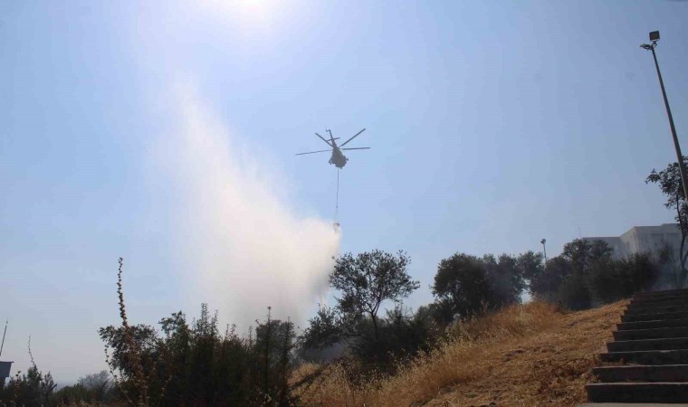 Aydın’da otluk alanda yangın çıktı. Aydın Adnan Menderes Üniversitesi (ADÜ) Sosyla Tesisleri’nin de içinde bulunduğu kampüs alanına doğru