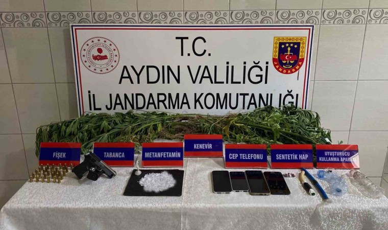Aydın İl Jandarma Komutanlığı KOM Şube Müdürlüğü, uyuşturucu madde ticaretini örgütlü olarak işleyen şahıslara yönelik faaliyetlerine aralıksız devam ediyor. Edinilen bilgiye göre, jandarma ekipleri Nazilli ve Bozdoğan ilçelerinde 11 adrese, eş zamanlı operasyon düzenlendi. Operasyonda 7 kişi gözaltına alınırken, adreslerde yapılan aramalarda; 5 bin 600 gram kubar esrar, 365 gram metamfetamin, 9 gram eroin, 35 kök keneviri bitkisi, 1 adet tabanca, 30 adet mühimmat, 1 adet ruhsatsız tüfek, suç gelirinden elde edilen 15 bin 640 TL para, 5 adet uyuşturucu kullanma aparatı, 2 adet hassas terazi, 9 adet cep telefonu ele geçirildi. Operasyonda yakalanan 7 şüpheli şahıstan; V.O., H.K., U.A., O.A., H.E. ve S.B. olmak üzere toplamda 6 şüpheli çıkarıldığı adli makamlarca tutuklanarak cezaevine gönderildi.