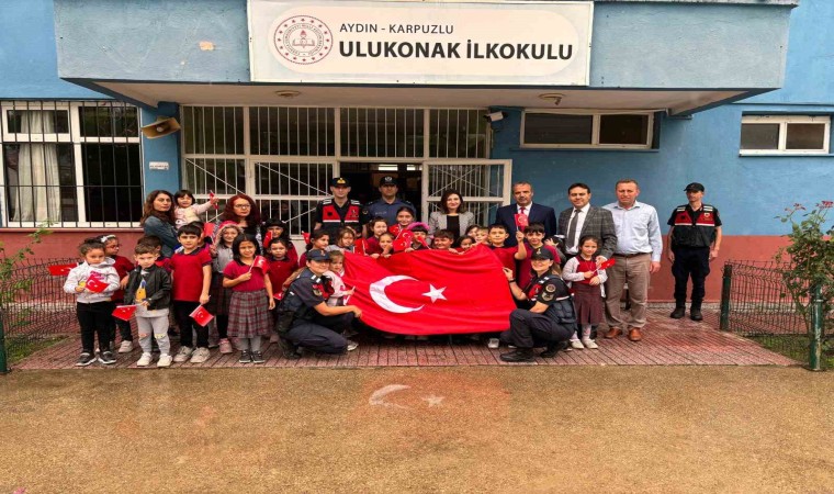 Aydın’da İl Jandarma Komutanlığı ekipleri Cumhuriyet’in 100’üncü yılı etkinlikleri çerçevesinde Karpuzlu Ulukonak İlkokulu’nda öğrencilerle bir araya geldi.