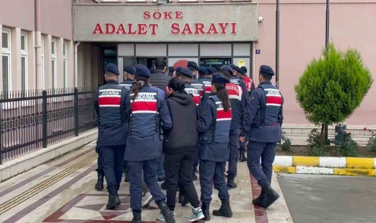 Operasyon kapsamında Aydın’da gözaltına alınan 18 şüpheli jandarmadaki işlemlerinin ardından sabah saatlerinde adliyeye sevk edildi.