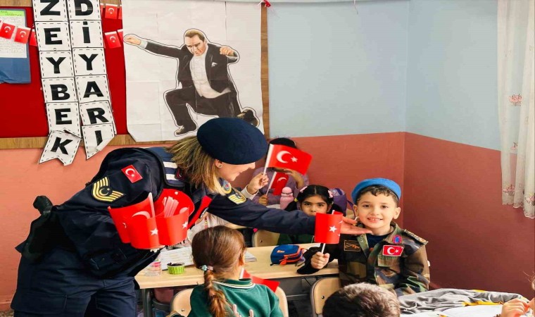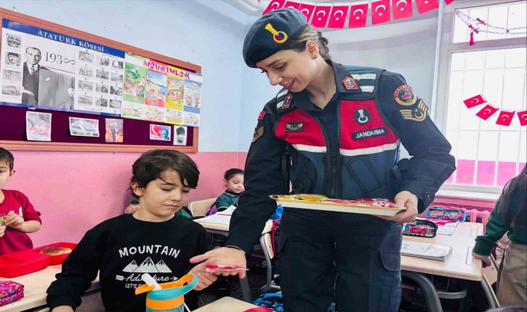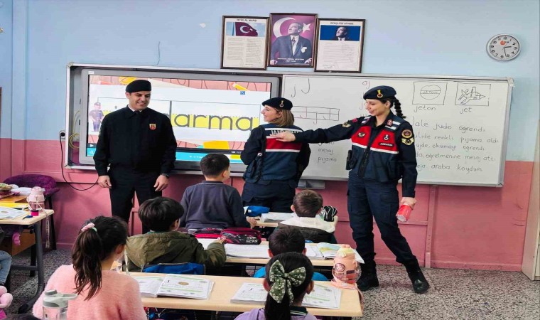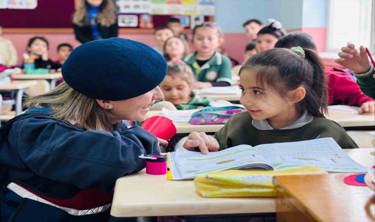 Aydın’ın Efeler ve Kuyucak ilçelerinde birinci sınıf öğrencilerini ziyaret eden jandarma ekipleri, minik öğrencilere "j" harfini öğretti.