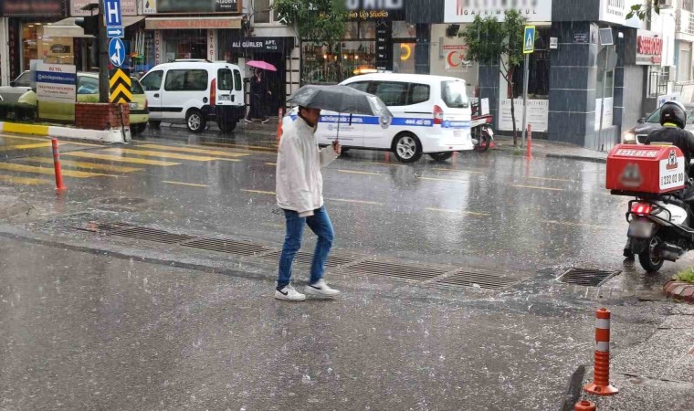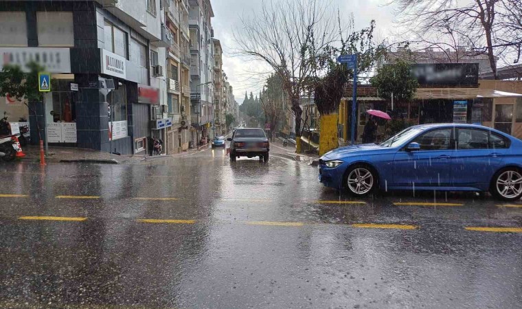 Aydın’ın Efeler ilçesinde etkili olan sağanak yağışlarla birlikte, bazı bölgelerde küçük su birikintileri meydana gelirken, yağmura hazırlıksız yakalanan vatandaşlar da saçak altlarına saklanmaya çalıştı.