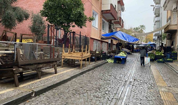 Aydın’ın Efeler ilçesinde Meteoroloji Genel Müdürlüğü’nün uyarısının ardından sabah saatlerinden itibaren etkili olan sağanak yağış, Salı Pazarı’nda tezgah açmaya hazırlanan esnafı zor durumda bıraktı.