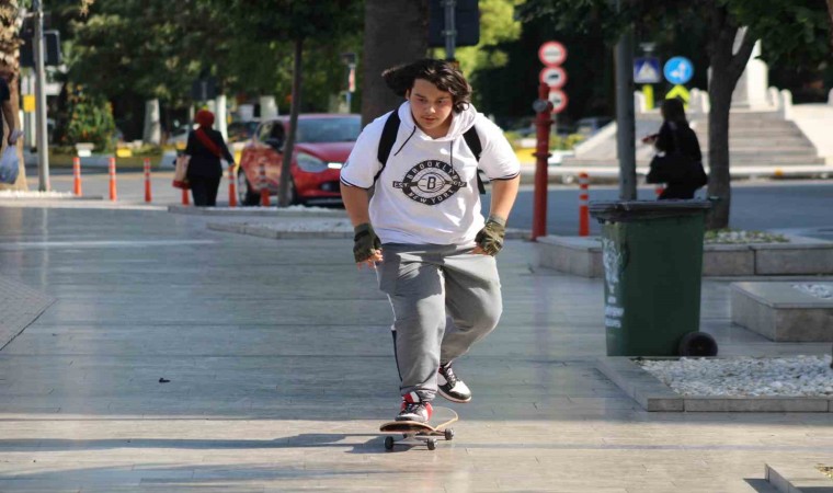 Kaykay ile serinlemeye çalıştığını ifade eden Mustafa Can, “Bu sıcaklık bu zamana göre normal değil, hava aşırı sıcak. Ya evde kalıp klima karşısında oturuyoruz, yada dışarı çıkıp gölgelerde durmaya çalışıyoruz. Sıvı kaybı olmaması için de bol bol sıvı tüketiyoruz. Ben de kaykay binerek serinlemeye çalışıyorum” dedi.