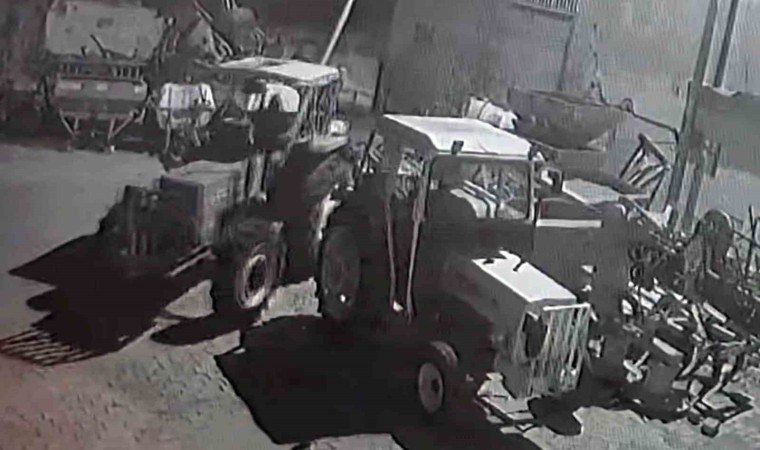 Aydın’ın Söke ilçesinde Sanayi Sitesi’nde meydana gelen traktör hırsızlığı, güvenlik kamerası anbean yansıdı.