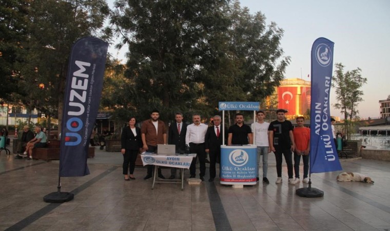 Aydın Ülkü Ocakları Atatürk Kent Meydanı’nda kurduğu stantta ’UOUZEM’ programını tanıtarak gelen soruları yanıtladı. Aydın Ülkü Ocakları İl Başkanı Hakan Karakuş, "UOUZEM öğrencilerimize yönelik bütün ders müfredatlarının video anlatımlarını içeren interaktif bir eğitim programı bu program sayesinde dershane ve diğer eğitim programlarından yararlanamayan imkanı olmayan gençlerimiz bu programa lisans kodları ile kayıt olarak ücretsiz bir şekilde katılabiliyor. İlköğretim ve ortaöğretim müfredatına uygun çalışma programı ile birlikte LGS, TYT, AYT ve KPSS gibi sınavlara hazırlık süreçlerini barındıran Ülkü Ocakları Eğitim ve Kültür Vakfı Uzaktan Eğitim Merkezi, Türk gençliğinin eğitim hayatına katkı sağlamak için tasarlanmıştır. Programımızdan yararlanmak isteyen öğrencilerimiz Aydın Ülkü Ocakları Hizmet binamıza gelerek bizlerle irtibata geçebilirler" dedi.