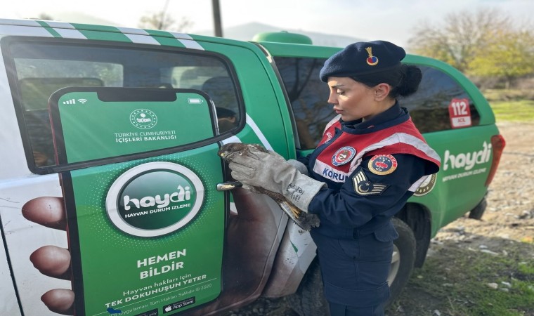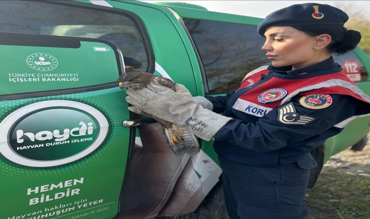 Aydın’ın Çine ilçesinde uçamayacak kadar yaralı halde bulunan kızıl şahin, jandarma ekiplerince doğa korumaya teslim edildi.