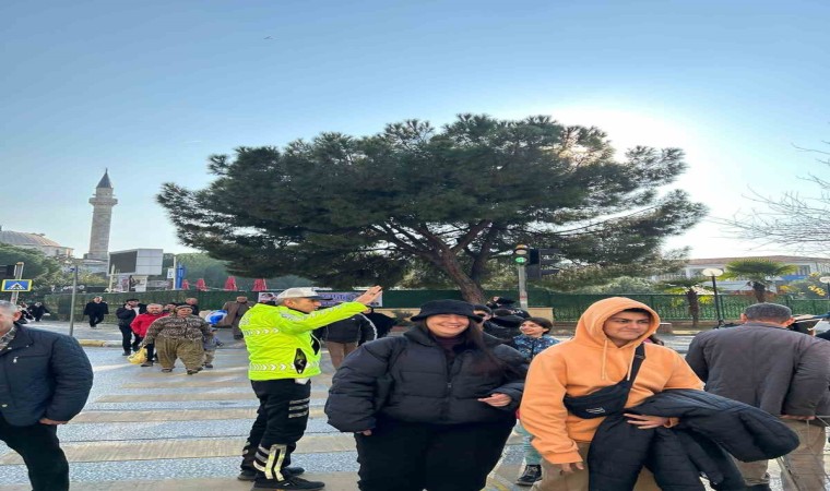 Aydın İl Emniyet Müdürlüğü Trafik Denetleme Şube Müdürlüğü ekipleri tarafından yaya geçitlerinde yayalara ve sürücülere yönelik eğitim gerçekleştirildi.