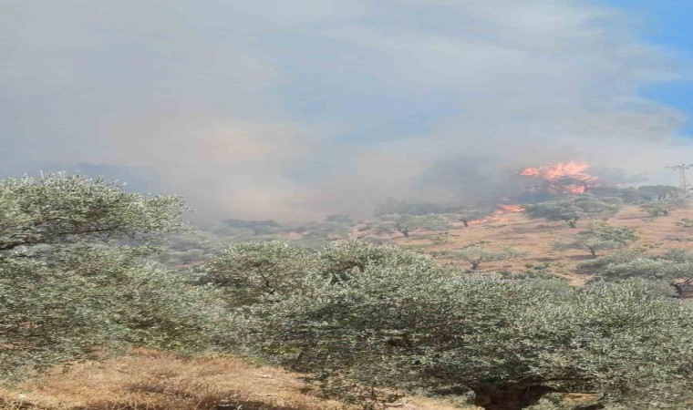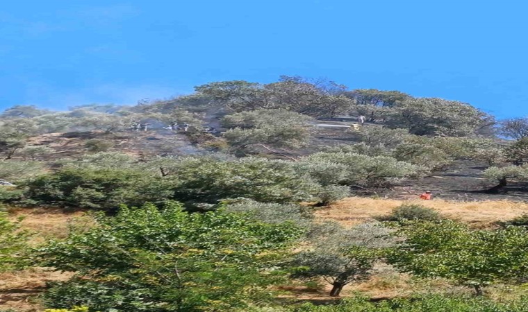 Aydın’ın Efeler ilçesindeki zeytinlik alanda çıkan yangını kontrol altına almak için havadan ve karadan müdahale devam ediyor.