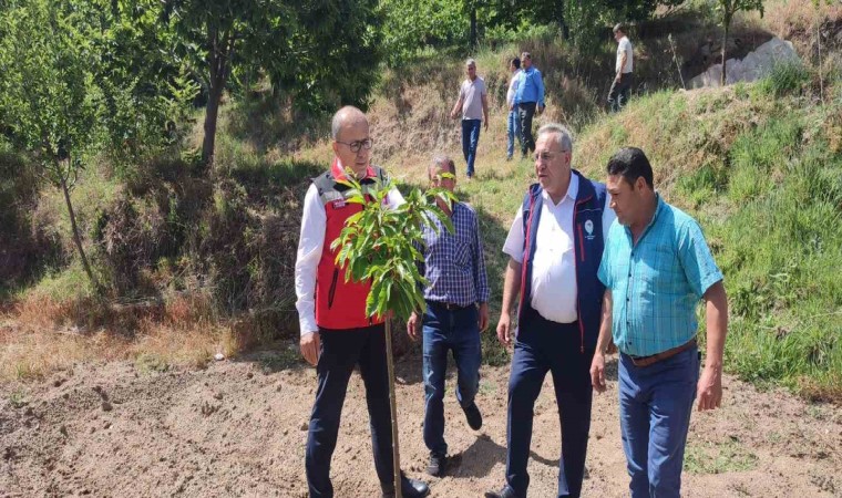 Aydın’da kestane üretiminin arttırılması amacı ile 2024 yılı Tarım Arazilerinin Kullanımının Etkinleştirilmesi (TAKE) Projesi kapsamında Bozdoğan ilçesindeki üreticilere toplam 3 bin 700 adet kestane fidanı dağıtımı gerçekleştirilmişti. Tarım ve Orman İl Müdürü İbrahim Altıntaş, Bozdoğan’ın Altıntaş Mahallesinde dağıtımı yapılan kestane fidanlarından alarak yeni bahçe tesis eden üreticilere ait kestane bahçesinde incelemelerde bulundu. Aydın’ın kestane üretiminde yüzde 29 paya sahip olduğunu belirten Aydın İl Tarım ve Orman Müdürü İbrahim Altıntaş 2023 yılında 2 bin 240 ton kestane ihraç ediğini ve yurt dışına gönderilen Aydın kestanesi ile ülke ekonomisine 7.8 milyon dolar gelir elde edildiğini kaydetti.