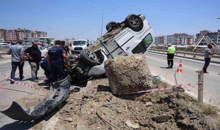 Hatay’ın Antakya ilçesinde aydınlatma direğine çarparak takla atan hafif ticari araçtaki 2 kişi yaralandı.