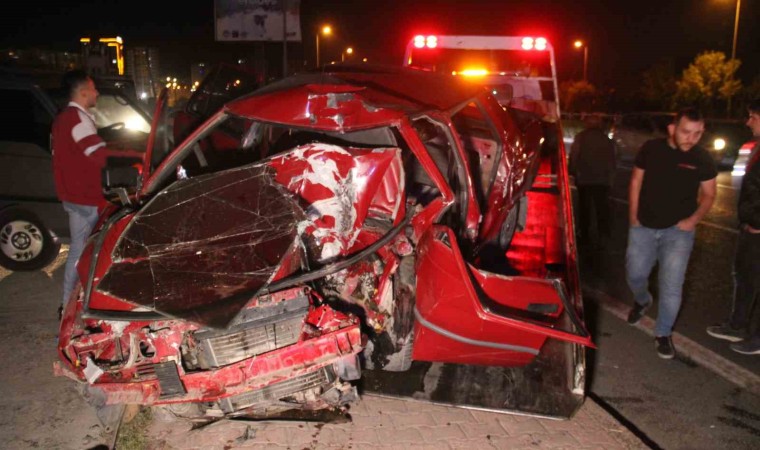 Kayseri’nin Kocasinan ilçesinde aydınlatma direğine çarpan otomobil karton gibi ezilirken sürücü ağır yaralandı.