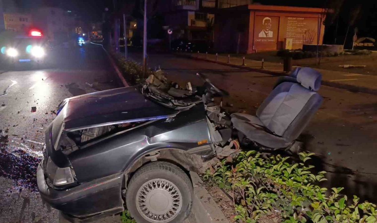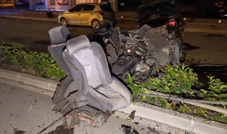 Antalya’nın Manavgat ilçesinde otomobilin refüjdeki aydınlatma direğine çarparak ikiye bölünmesi sonucu meydana gelen trafik kazasında 1 kişi ölürken 1 kişi de yaralandı. Kaza güvenlik kamerasına saniye saniye yansırken otomobil sürücüsünün 1.57 promil alkollü olduğu ve sürücü belgesinin olmadığı belirlendi.