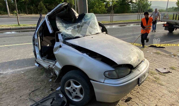 Kocaeli’nin İzmit ilçesinde sürücüsünün direksiyon hakimiyetini kaybettiği otomobil kaldırıma, ardından aydınlatma direğine çarptı. Kazanın şiddetiyle araç ortadan yamulurken adeta ikiye katlandı. Sürücü hayatını kaybetti, yolcu ise yaralandı.