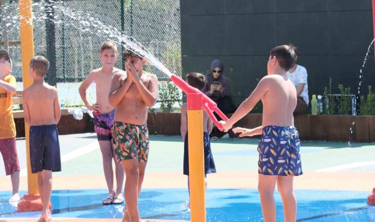 Aydınlı çocuklar mevsim normallerinin üzerinde seyreden sıcaklarda serinlemenin en güzel ve en güvenli yolunu buldu. Çocuklar, Aydın Büyükşehir Belediyesi tarafından geçen hafta açılan Mimar Sinan Parkı’ndaki splash havuzda serinliyor.