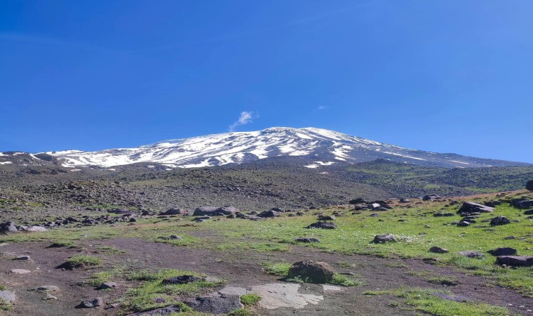 Türkiye’nin çatısı olarak kabul edilen ve Ağrı’nın en yüksek dağı olan Ağrı Dağı, profesyonel dağcılara ev sahipliği yapmaya devam ediyor. Bu çerçevede Aydın Dağcılık Spor Kulübü (AYDAK) üyesi Berkay Çetin ise 5 bin 137 metre yüksekliğe sahip Ağrı Dağı’nda zirve tırmanışı yaptı. Zorlu bir tırmanışın ardından zirveye ulaşan Çetin, Türkiye’nin çatısına çıktı.