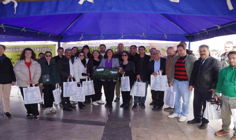 Aydın Büyükşehir Belediyesi tarafından dağıtımı yapılan ata tohumu fidelere vatandaşlar yoğun ilgi gösterirken, vatandaşlar fidelerini Aydın Büyükşehir Belediye Başkanı Özlem Çerçioğlu’nun elinden aldı.