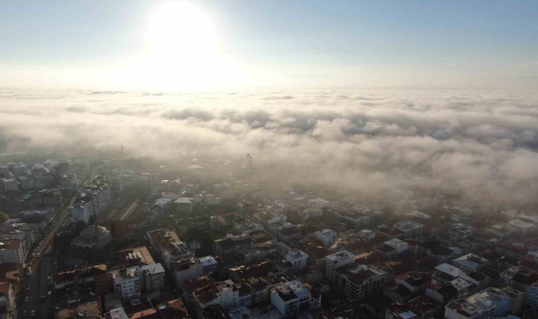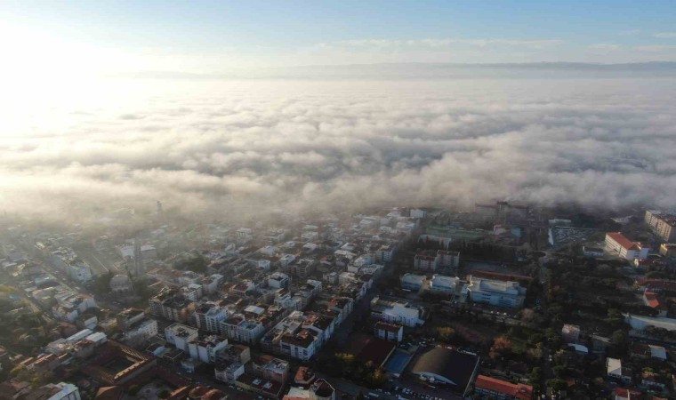Sisle örtülen Efeler’de kartpostallık görüntüler oluşurken, şehir merkezinin üst kesimlerinin ise sisten etkilenmediği görüldü. Adeta ilçeyi ikiye ayıran sis nedeniyle ortaya çıkan manzara ise havadan görüntülendi. Şehrin üst kesimlerinde güneşli açık bir hava hakimken, orta ve alt kesimlerinde ise sis çöktüğü görüldü.