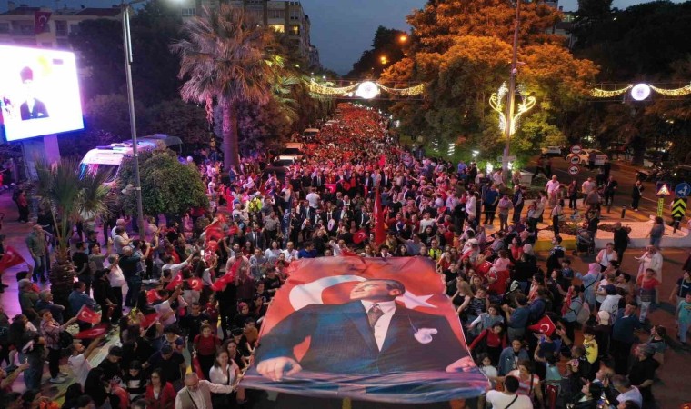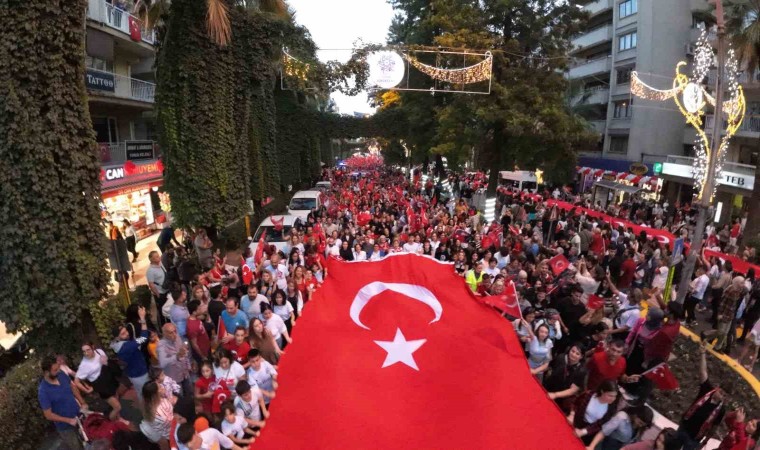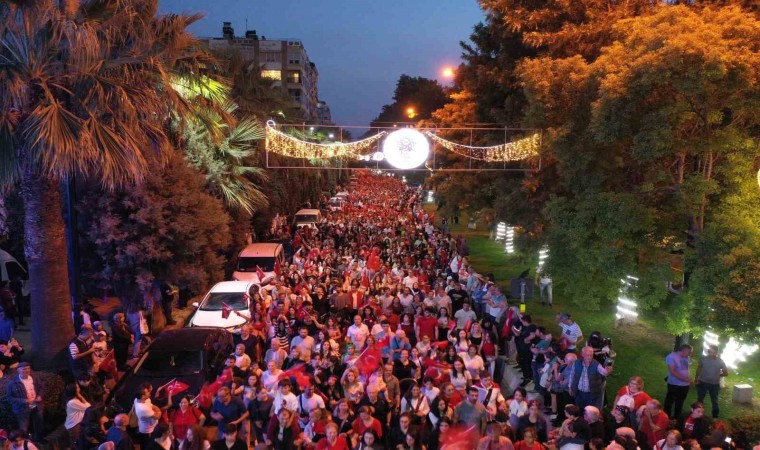 Atatürk Kent Meydanı’ndan başlayarak Adnan Menderes Bulvarı boyunca devam eden korteje, on binlerce vatandaş Türk bayraklarıyla katıldı. Çerçioğlu da, kortejin önünde yer alarak yürüyüş boyunca söylenen marşlara eşlik etti.