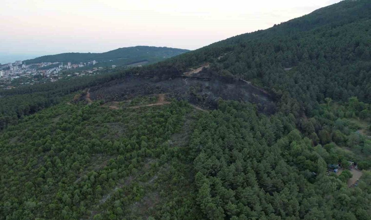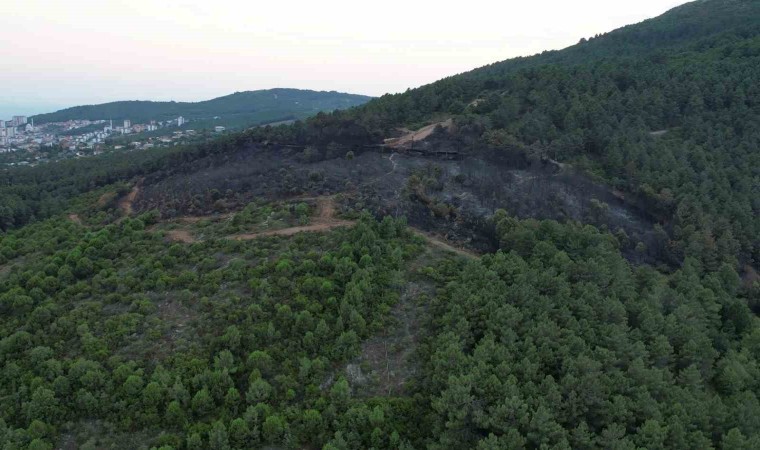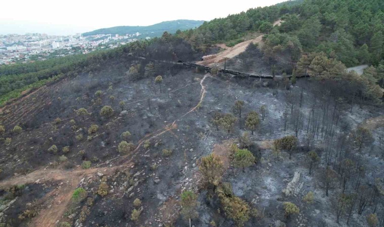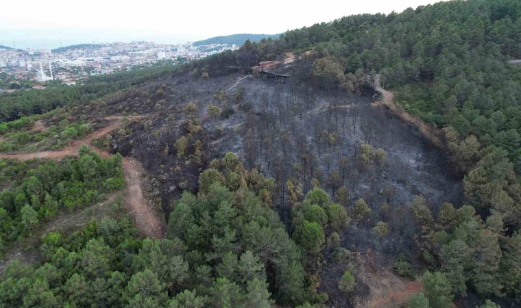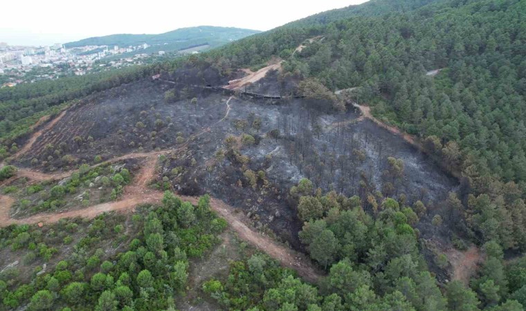Pendik Aydos Ormanı’nda çıkan yangında zarar gören 4 hektarlık alanın son hali dron ile havadan görüntülendi.