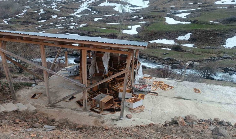 Erzurum’un İspir ilçesinde aç kalan boz ayılar arıcılara ait depoyu dağıttı.