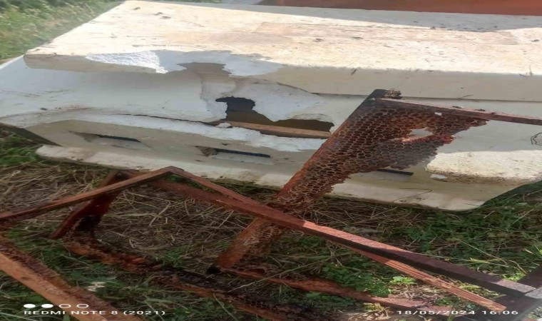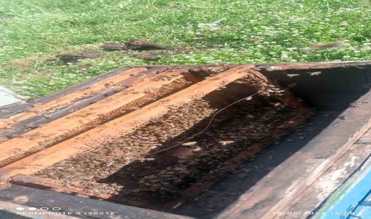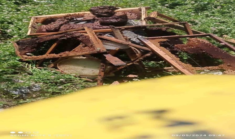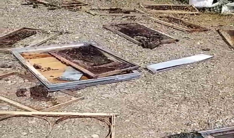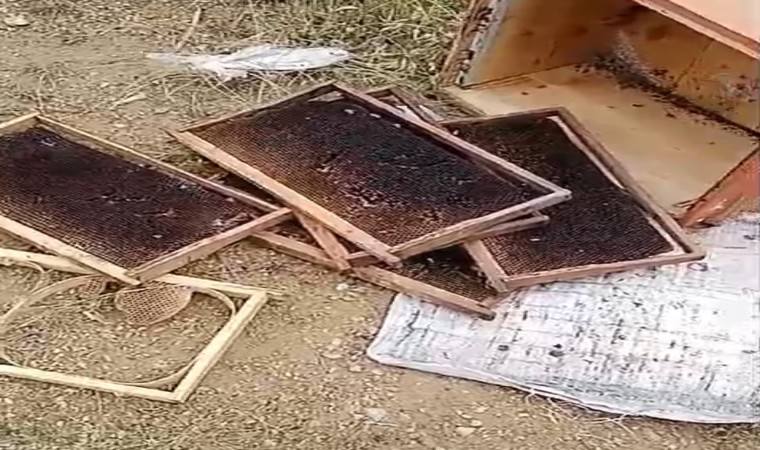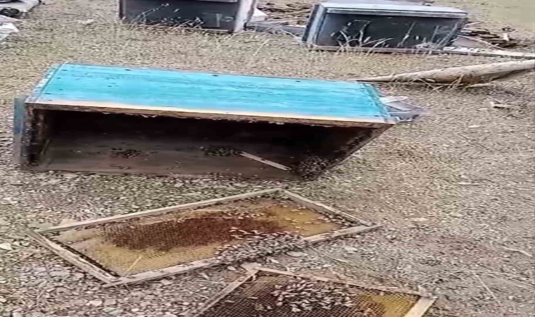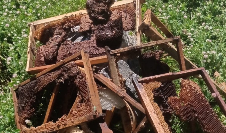 Hakkari’nin Şemdinli ile Derecik ilçeleri arasında yer alan Tütünlü köyünde bir gecede ayılar çok sayıda arı kovanını kırarken, binlerce arı telef oldu.