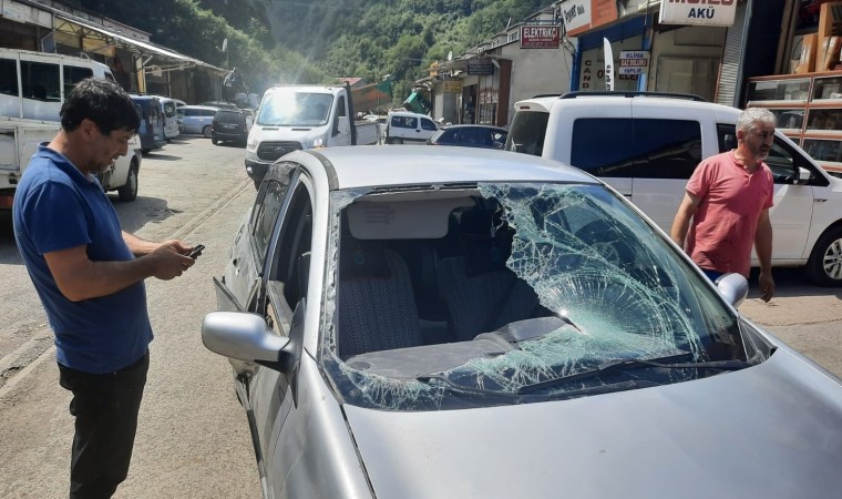 Sakarya’nın Akyazı ilçesinden yaz tatilini geçirmek üzere memleketi Trabzon’un Şalpazarı ilçesine gelerek Alaca Yaylası’na çıkan Kemal Söyler sabah kalktığında ayının otomobiline verdiği zararı görünce büyük şok yaşadı.