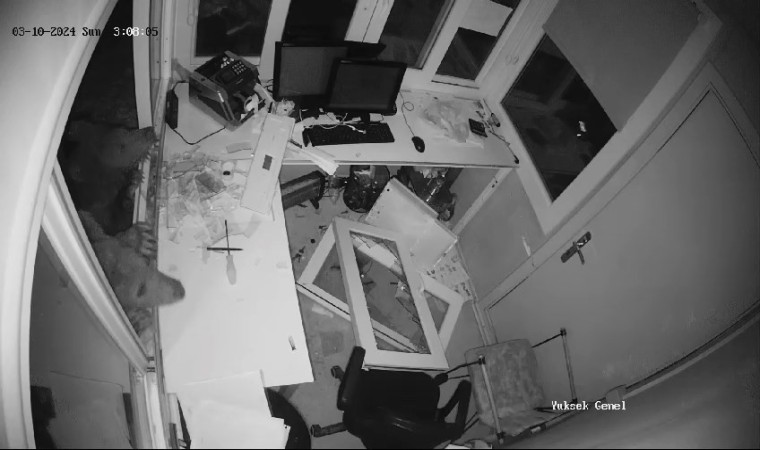 Uludağ’ın ormanlarında yiyecek bulamayan ayılar, insanların yaşadığı ortamlara inerek yiyecek aramaya devam ediyor. Güvenlik kameralarına yansıyan son görüntüler, Sarıalan Bölgesinde kayda alındı. 2 yavrusu ile birlikte yiyecek arayan ayı, önüne gelen ne varsa yıktı geçti. Yavrularını doyurmak için yiyecek bulmak zorunda olan yetişkin ayı, çöp konteynerlerinde bir şey bulamayınca, Macera Park’ın güvenlik kulübesine girmeye çalıştı. Gişenin camını zorlayarak indiren ayı, içeri giremeyince diğer camı da zorlayarak kırdı.