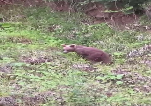 KARABÜK'ÜN YENİ İLÇESİNDE BİR KİŞİ CEP TELEFONUYLA GÖRÜNTÜLEDİĞİ AYIYI ISLIK ÇALARAK ÇAĞIRDI.