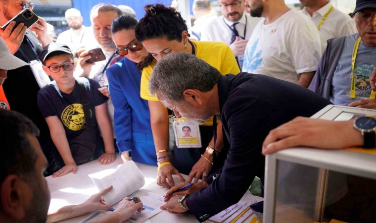 Sarı-lacivertli kongre üyeleriyle fotoğraf çektiren Kocaman, daha sonra oy kullanma kabinine girerek oyunu kullandı.